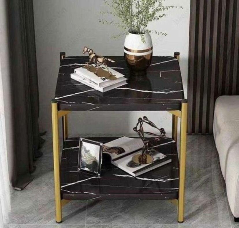 Apportez une touche d'élégance à votre intérieur avec cette table d'appoint en marbre. Idéale pour le salon, elle se distingue par son design moderne avec des pieds dorés, parfaite pour exposer vos objets décoratifs préférés.