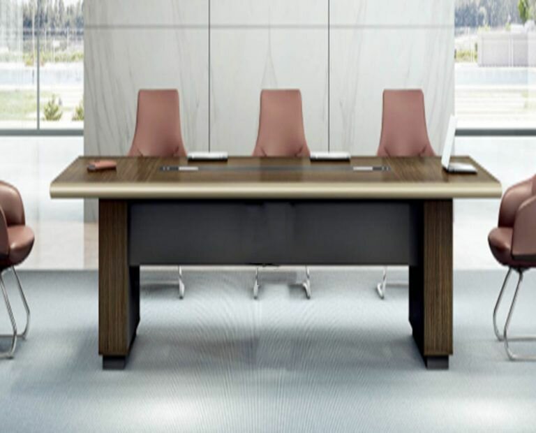 Table de conférence moderne en bois, idéale pour les réunions d'affaires. Design épuré et élégant, parfait pour un bureau professionnel. Complétez votre espace de travail avec ce mobilier sophistiqué.