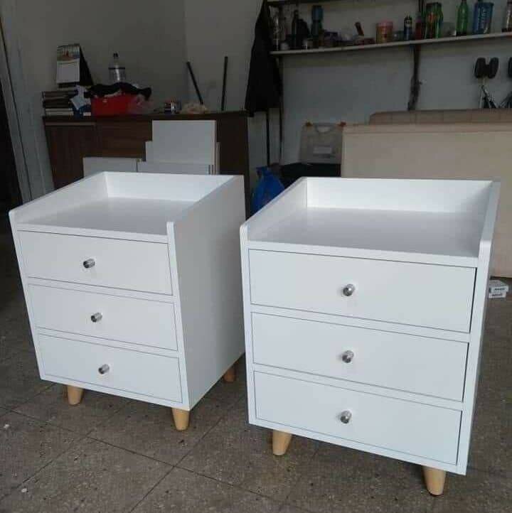 Meuble de chevet moderne et élégant. Fabriqué avec des matériaux de haute qualité, il offre un espace de rangement supplémentaire avec ses 3 tiroirs. Parfait pour une chambre à coucher contemporaine.