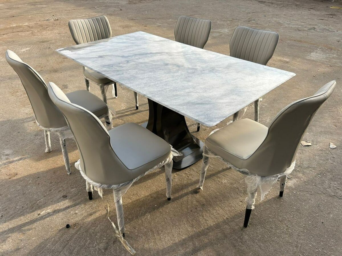 Transformez votre salle à manger avec cette table en marbre moderne et ses chaises confortables. Idéale pour des repas en famille ou entre amis, elle combine style et fonctionnalité.