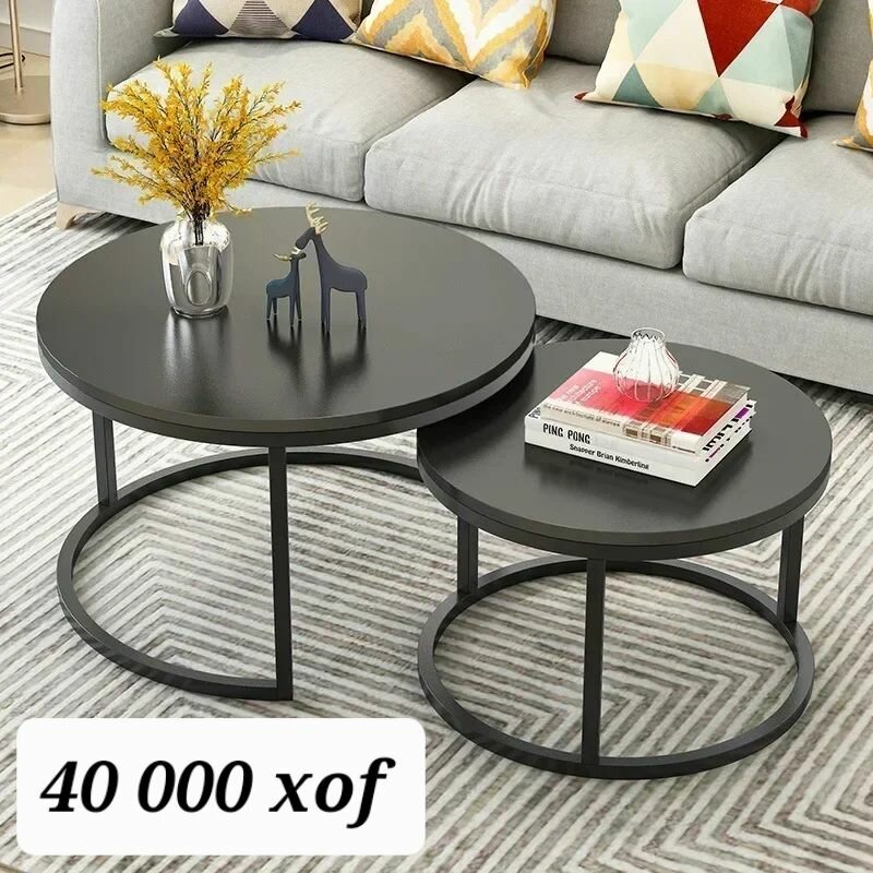 Tables Gigognes Élégantes en Marbre et Métal Noir
