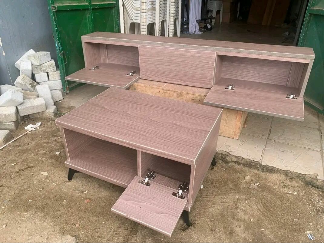 Table TV moderne avec rangements, design élégant, parfait pour salon contemporain, fabriquée en bois de qualité