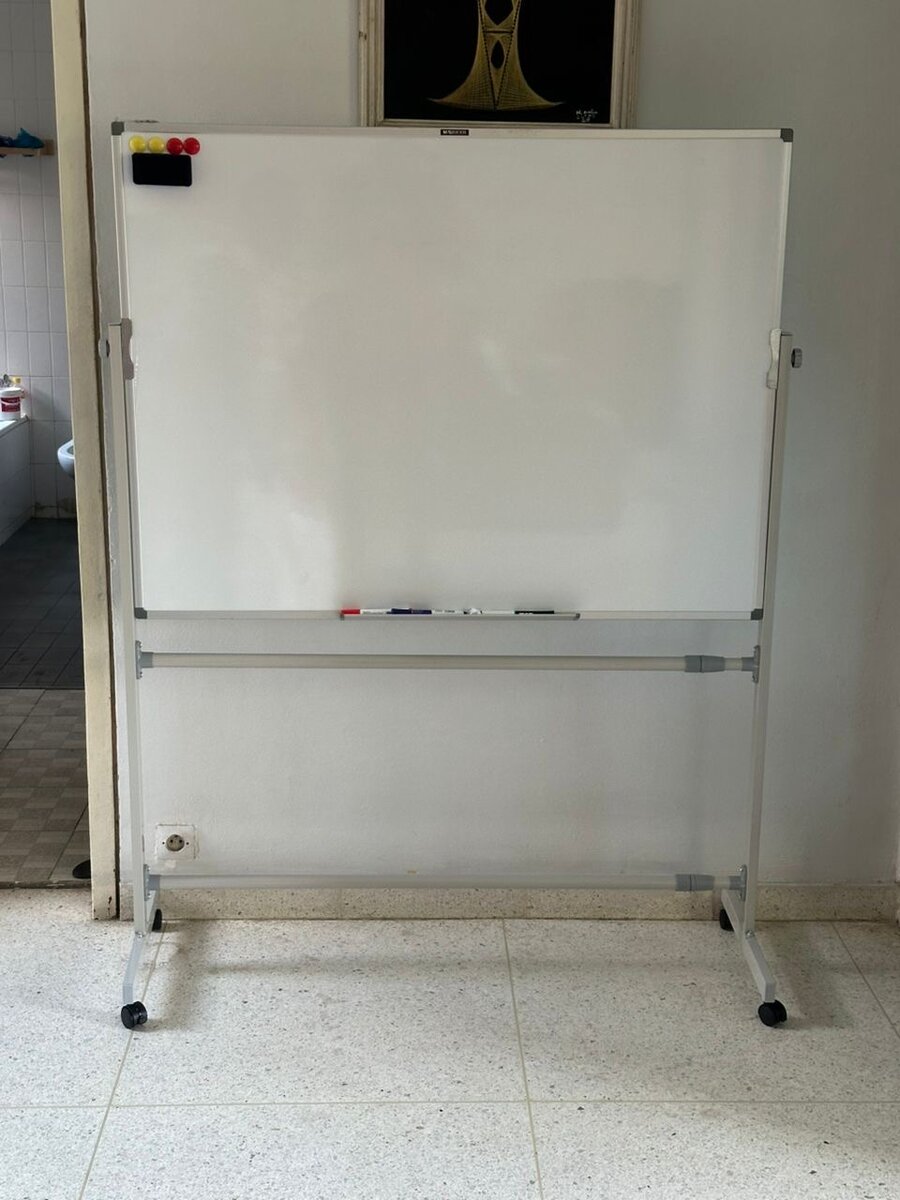 Transformez vos réunions et présentations avec ce tableau blanc magnétique sur roulettes. Idéal pour bureaux et écoles. Facile à déplacer, durable et effaçable à sec. Format 1m20x90cm