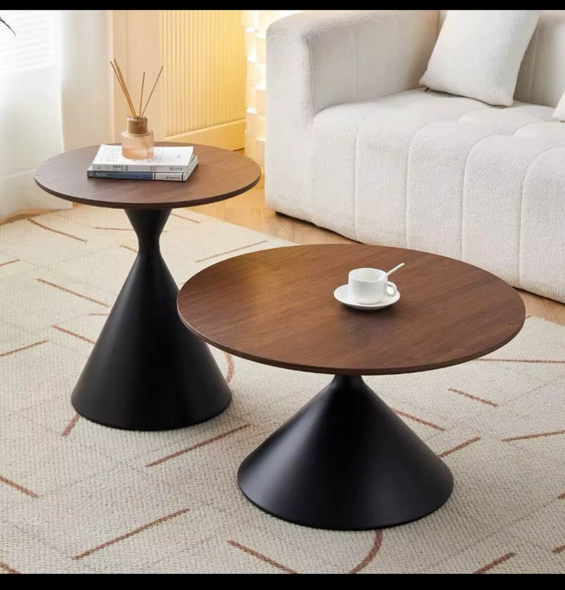 Ajoutez du style à votre salon avec ces élégantes tables basses rondes. Idéales pour y poser des livres ou un café, elles combinent un plateau en bois chaleureux à une base conique moderne. Parfaites pour une ambiance contemporaine et épurée.