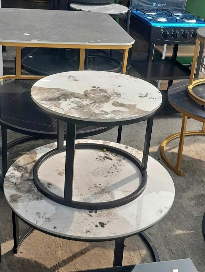 Tables Gigognes Élégantes en Marbre et Métal Noir