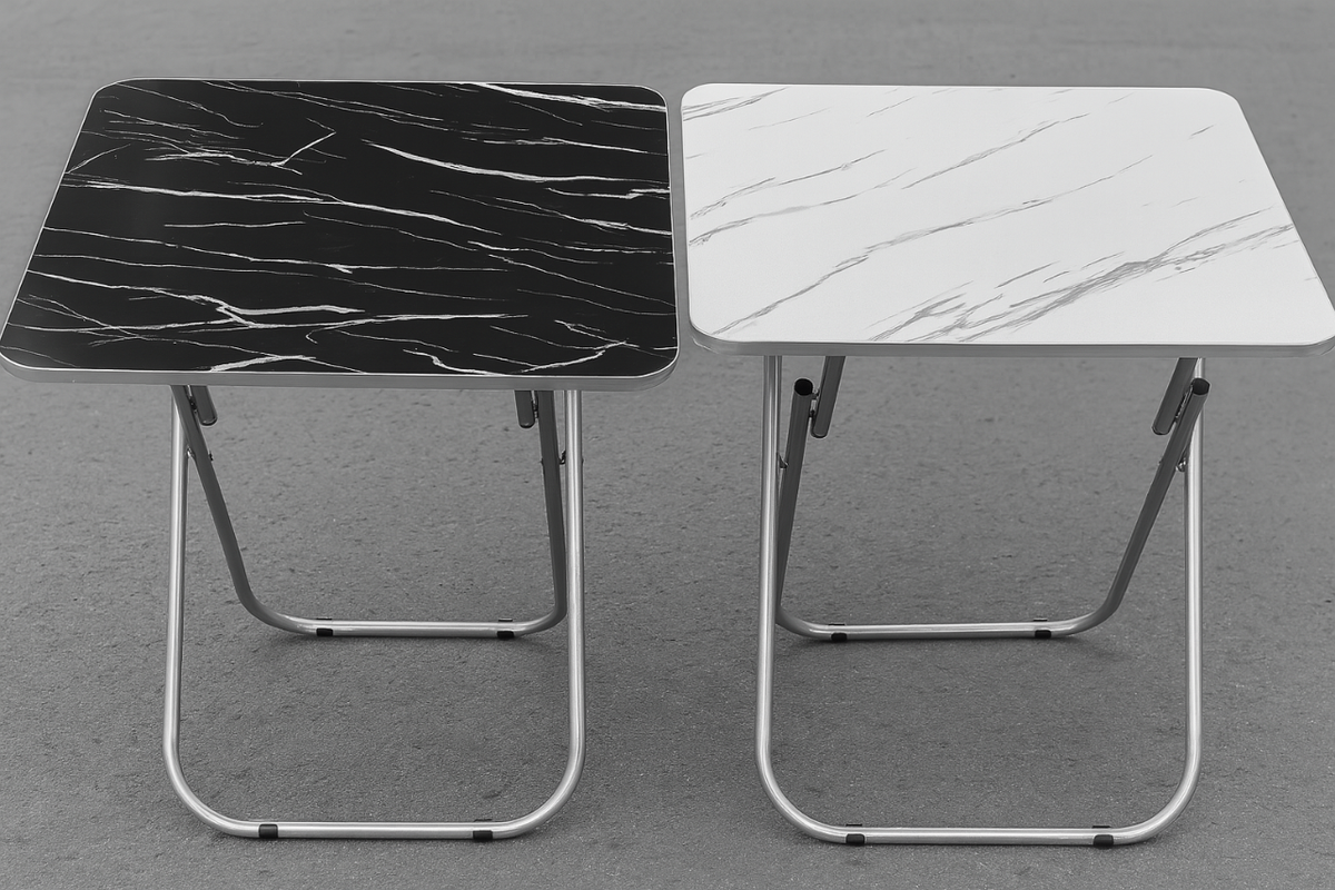Ajoutez une touche d'élégance à votre intérieur avec ces tables pliantes imitation marbre. Idéales pour les espaces réduits, elles vous offrent à la fois style et praticité. Parfaites pour les repas d'appoint ou pour votre bureau.