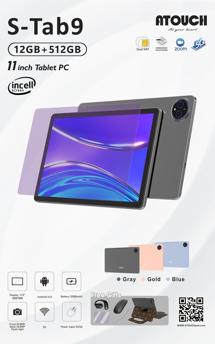 Découvrez la tablette Atouch S-Tab9, un bijou technologique pour tous vos besoins numériques. Avec ses 12 Go de RAM et 512 Go de stockage, profitez d'une expérience fluide et de performances supérieures. Son écran de 11 pouces et son design élégant s'adaptent parfaitement à votre style de vie. Idéale pour le travail ou les loisirs, cette tablette est livrée avec des accessoires gratuits , vous permettant de maximiser son potentiel. Faites le choix de la performance et de l'élégance.