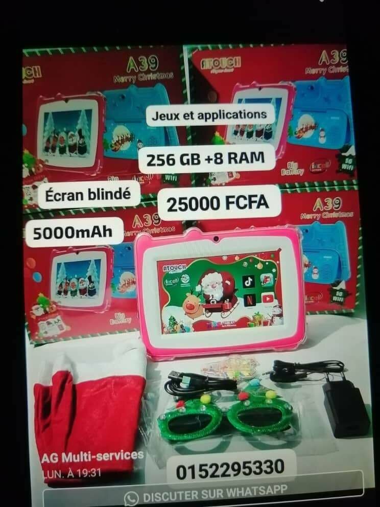 Tablette éducative Atouch A39 Écran 7 pouces blindé Ram 8 GB Mémoire interne 256 GB Android 12 Wifi, Bluetooth, playstore Jeux et applications installés