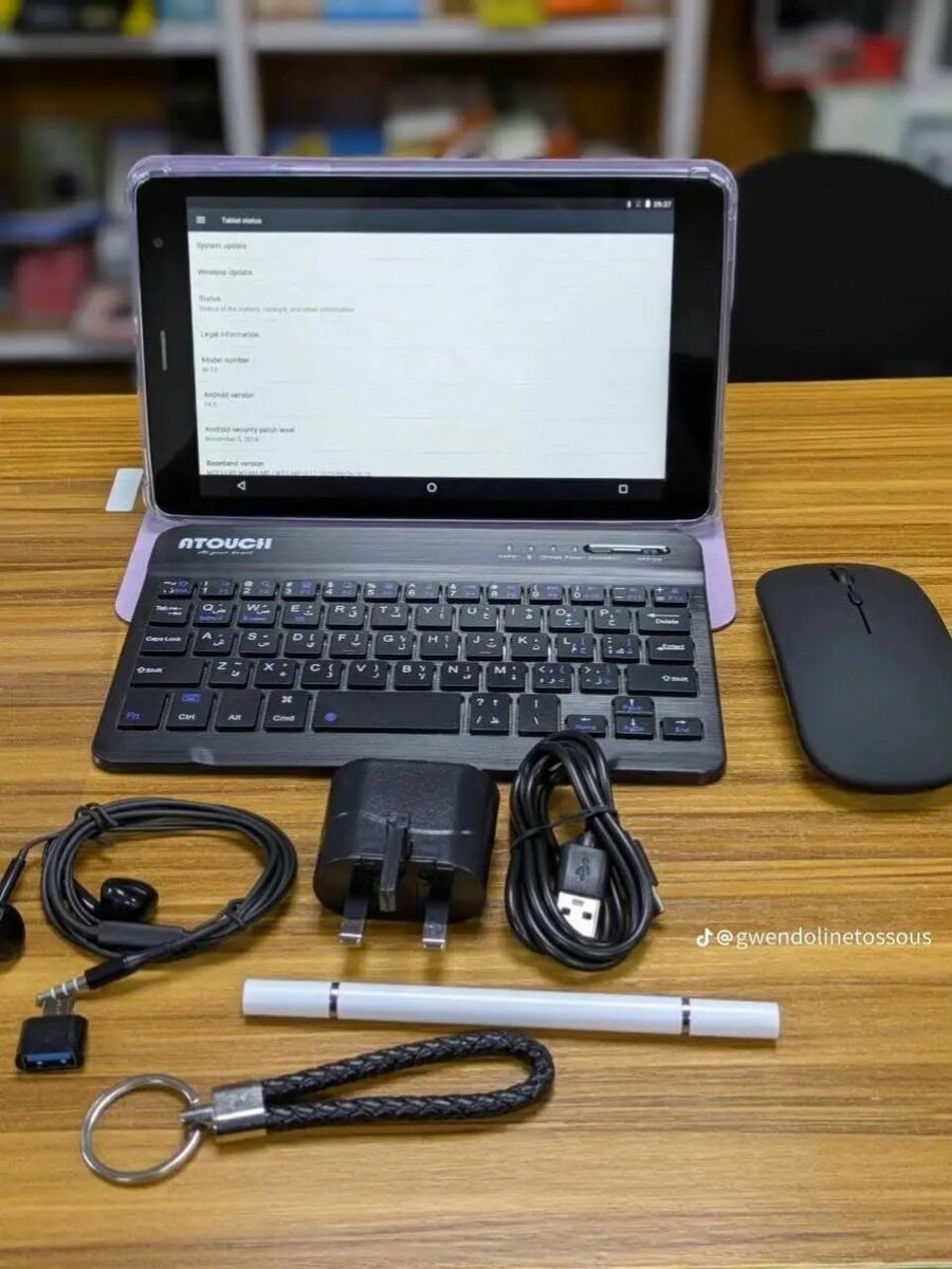 Tablette éducative Atouch M-T6 Écran 8 pouces 2 puces 5 G Clavier et souris Android 14.0 Batterie 9000Mah Mémoire 256gb Rame 8 gb Android WiFi bluetooth Double caméras