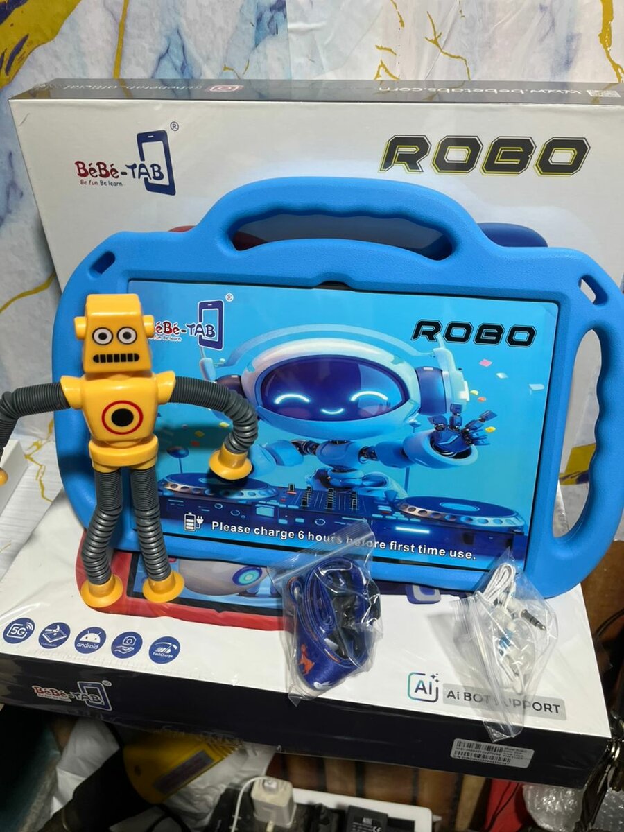 Une tablette éducative Bébé-Tab avec support AI Robo. Parfaite pour les enfants, elle offre des heures de jeu et d'apprentissage. Avec étui robuste et design attrayant, c'est un compagnon idéal pour l'éducation interactive.