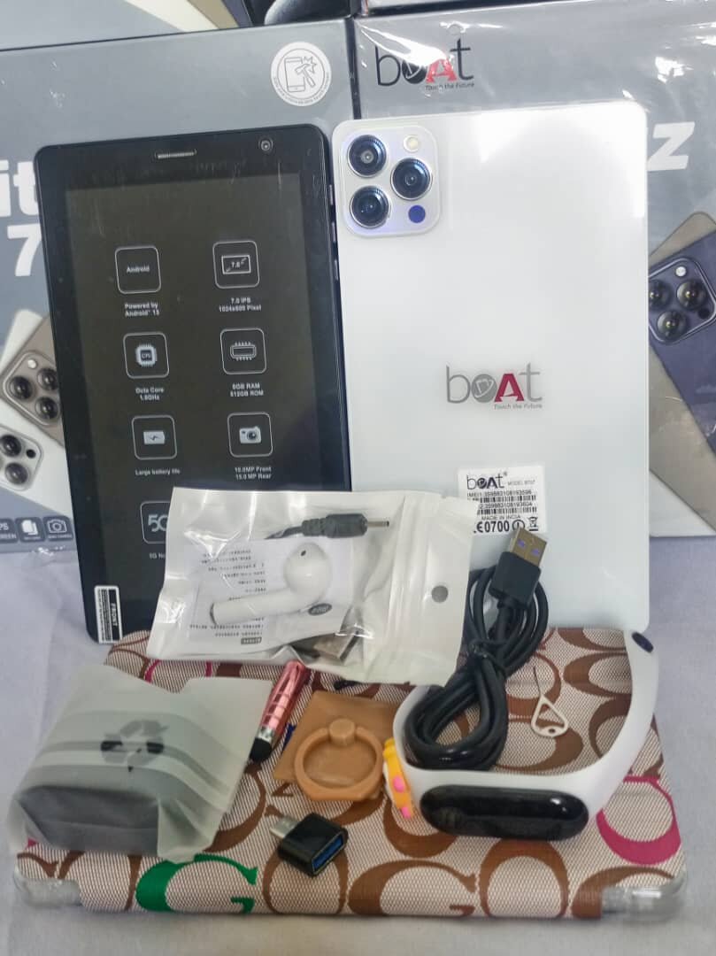 Tablette éducative Boat tab 707 Écran 7 pouces 1 puce Mémoire 512gb Rame 8gb Batterie 5000mah Android 13.0 Double caméra WiFi bluetooth