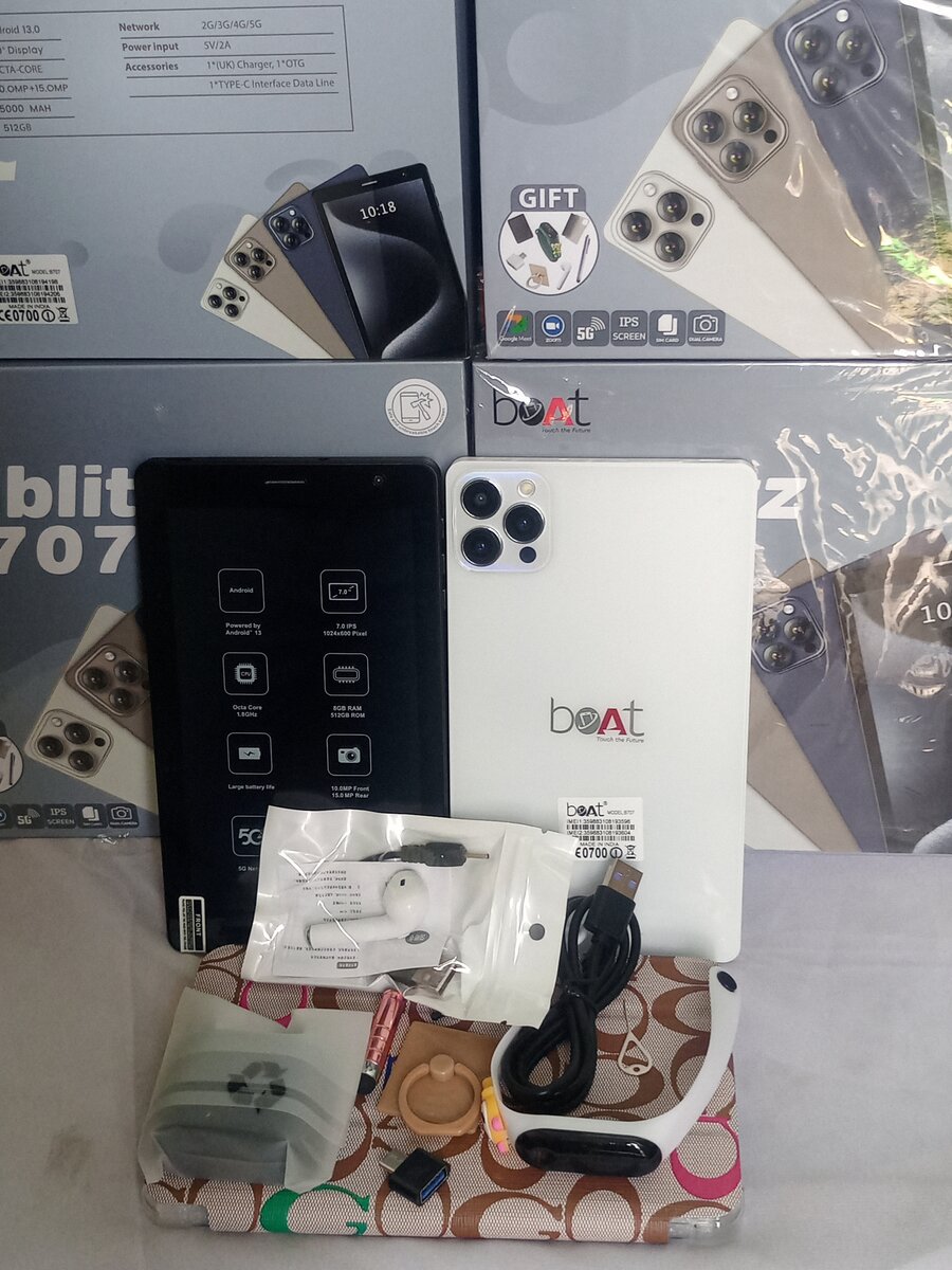 Tablette éducative Boat tab 707 Écran 7 pouces 1 puce Mémoire 512gb Rame 8gb Batterie 5000mah Android 13.0 Double caméra WiFi bluetooth