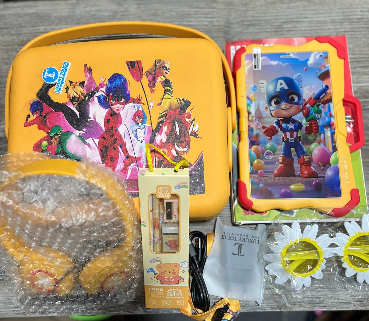 Offrez à votre enfant une tablette éducative de 7 pouces inspirée par Lady Bug, idéale pour l'apprentissage avec ses jeux et applications préinstallés. Accompagnée d'écouteurs, lunettes fantaisie et une housse protectrice colorée, c'est le choix parfait pour l'éducation et le divertissement.