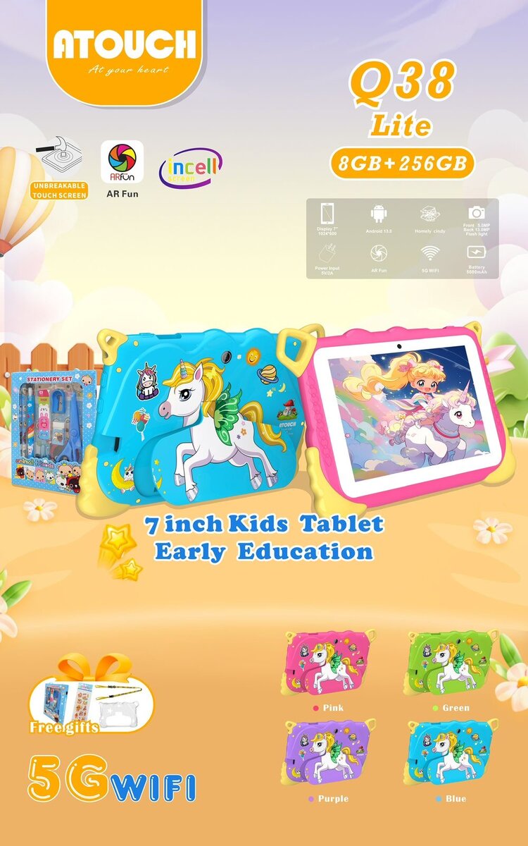 Découvrez la tablette éducative 7 pouces pour enfants, idéale pour l'apprentissage ludique. Équipée de 8GB + 256GB pour stocker jeux et applications. Parfaite pour développer les compétences numériques des plus jeunes. Disponible en plusieurs couleurs attrayantes, elle offre une connectivité 5G pour une navigation rapide. Un choix excellent pour l'éducation précoce!