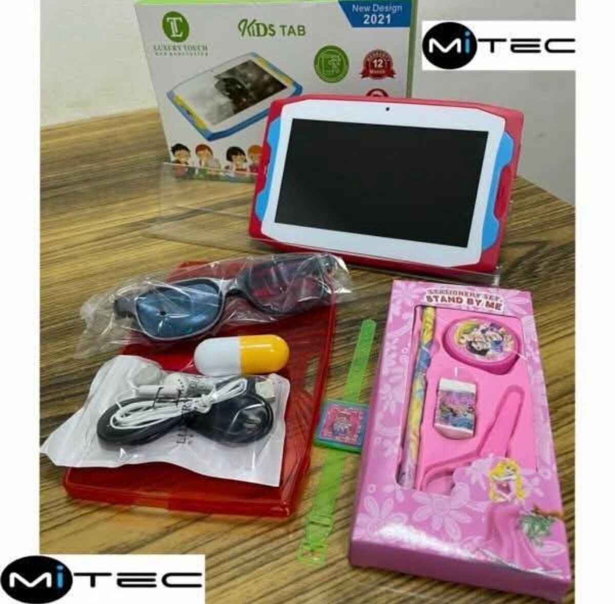 Tablette pour enfants avec accessoires amusants. Écran tactile intuitif, idéal pour apprentissage et jeux éducatifs. Inclut support, stylet et plus. Parfait pour un usage à la maison ou en voyage. Stimule la créativité et l'apprentissage.