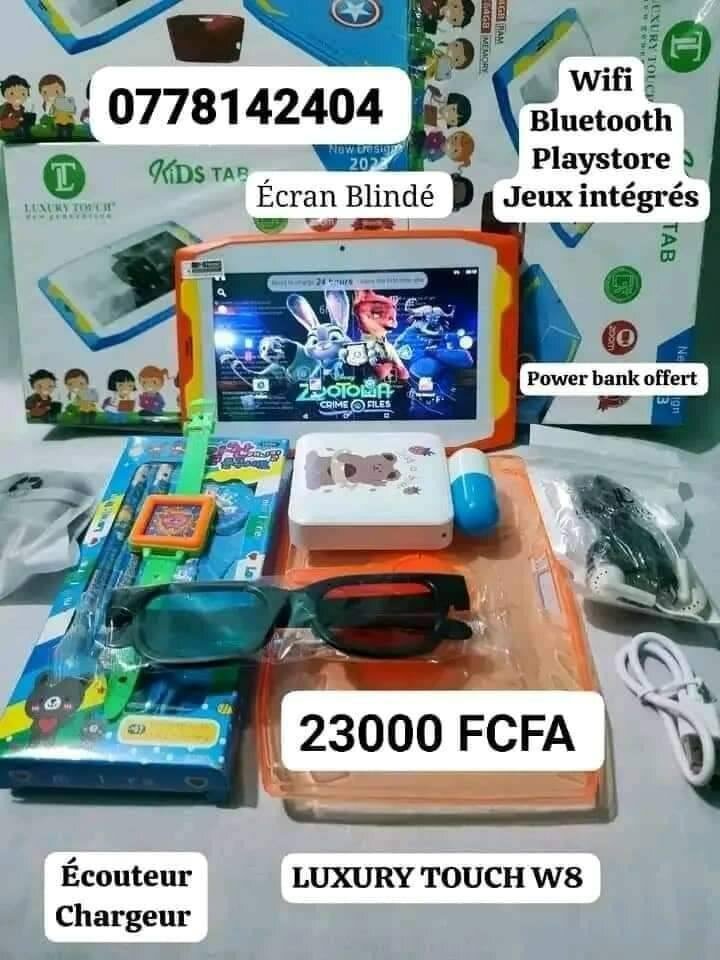 Tablette éducative Luxury Touch W8 écran blindé Écran 7 pouces Memoire 128 GB Rame 6 Wi-Fi Système Android Jeux préinstallés Batterie 3000mah