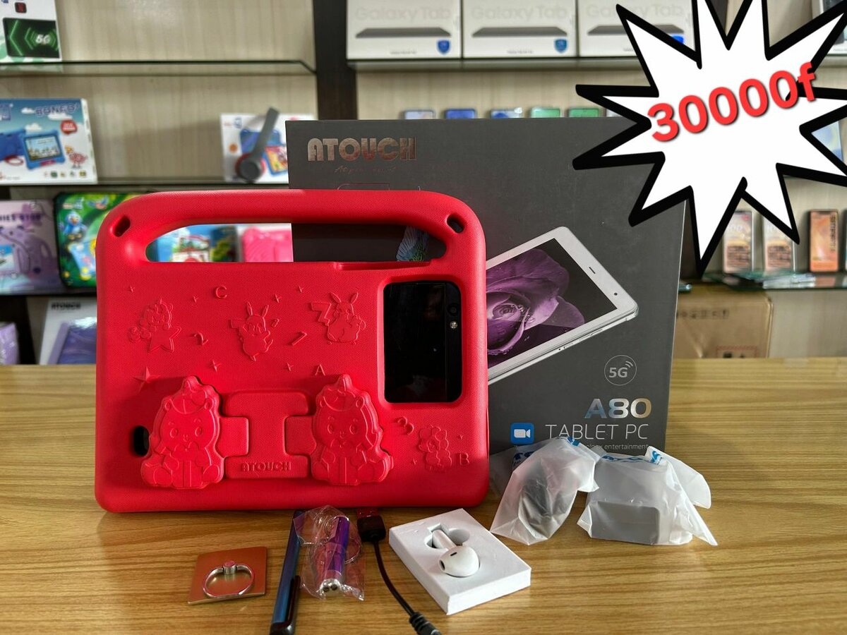 Découvrez la tablette enfant ATouch A80 5G, conçue pour les petits avec une coque de protection rouge robuste. Livrée avec des accessoires, cette tablette est idéale pour une utilisation en toute sécurité.