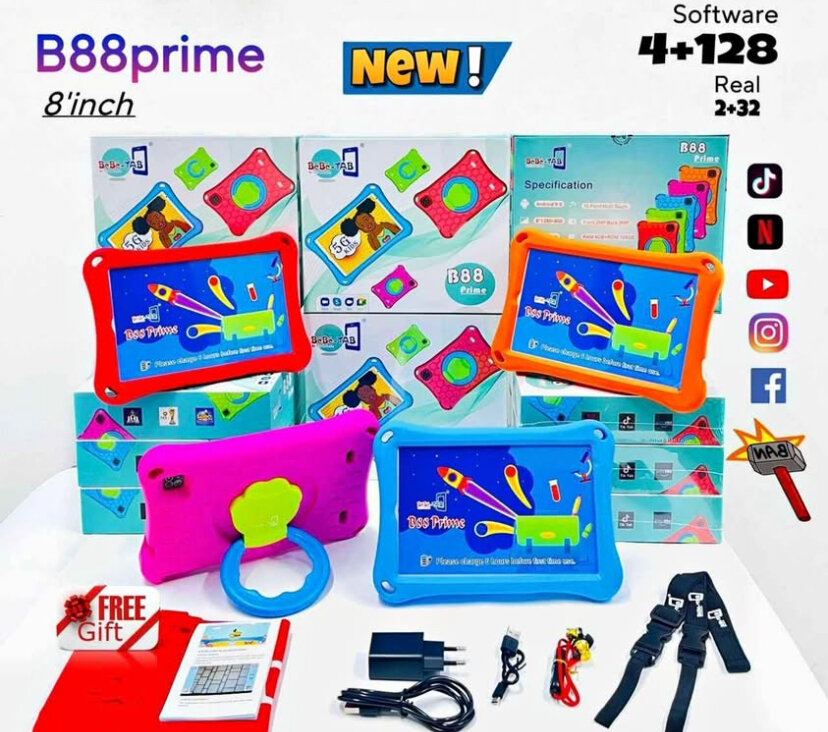 Parfaite pour apprendre et jouer, la tablette B88prime offre un écran de 8 pouces, une capacité de 4+128 Go et un design coloré et robuste. Livrée avec étui protecteur, idéale pour les enfants!