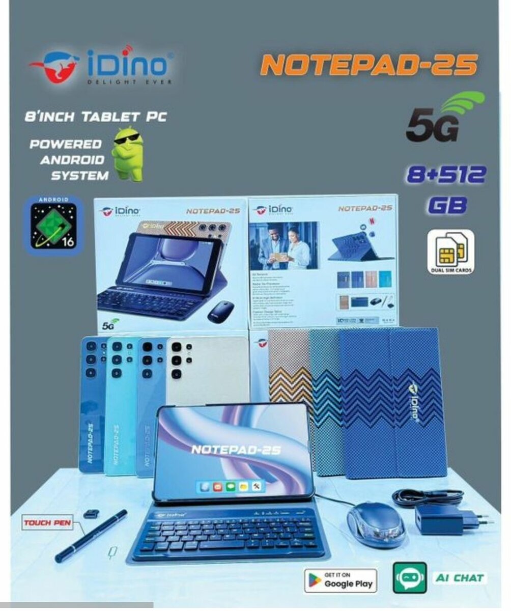 Découvrez la tablette iDino Notepad-25 5G, un appareil puissant avec écran de 8 pouces, doté de 8 Go de RAM et 512 Go de stockage. Profitez de la connectivité 5G, idéale pour la navigation rapide et les applications gourmandes. Livrée avec un clavier détachable et un stylet, elle est parfaite pour les professionnels en déplacement et les amateurs de technologie. Compatible avec les cartes SIM et optimisée pour les appels vidéo et l'IA.