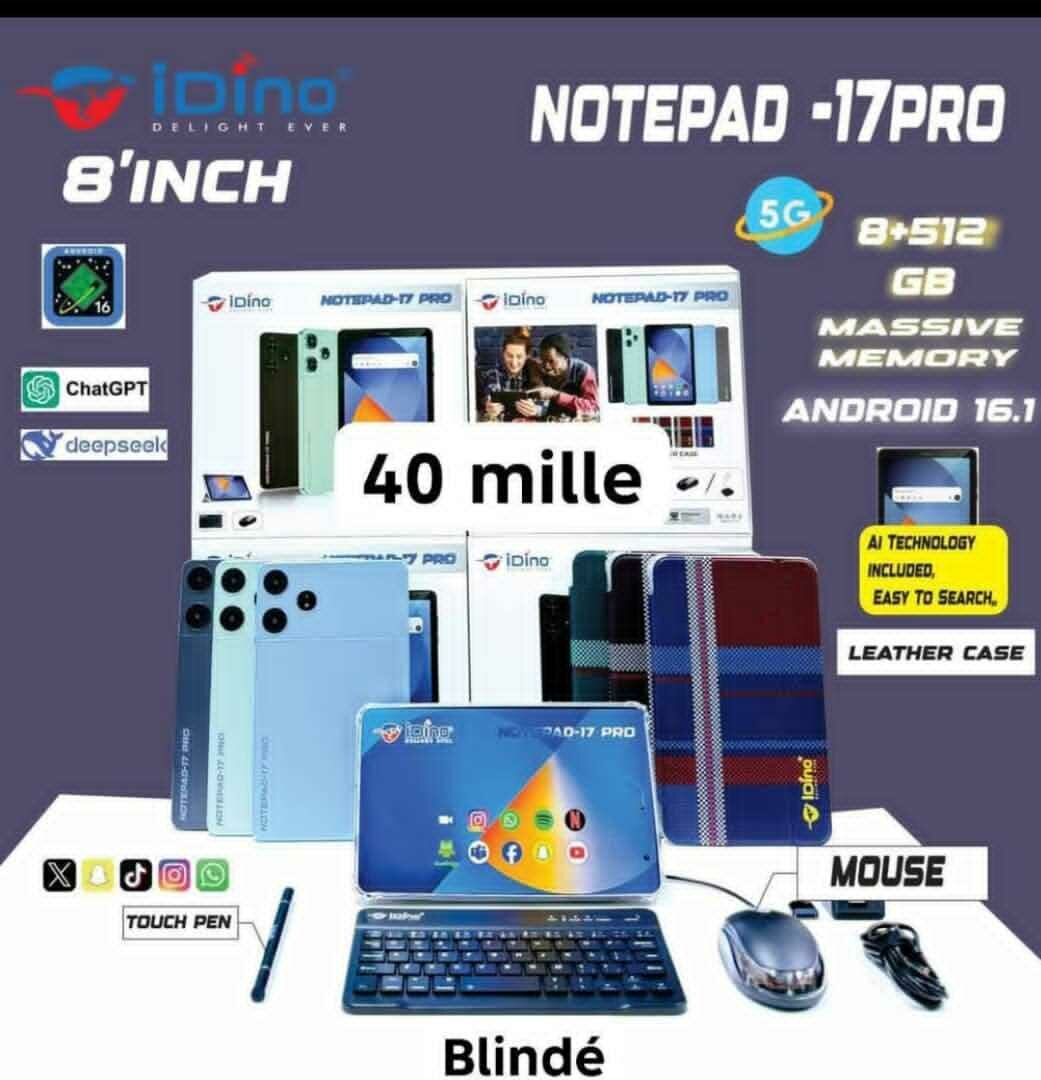 Découvrez la tablette tactile iDino Notepad 17 Pro avec 8Go de RAM et 512Go de stockage. Écran 8'', processeur 5G, Android 16.1. Parfait pour le travail et les loisirs.