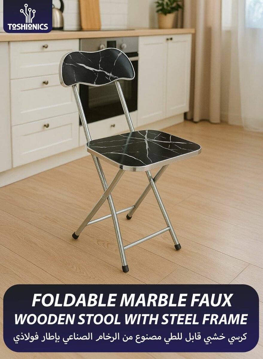 Découvrez le tabouret pliable TOSHIONICS, idéal pour votre cuisine ou salle à manger. Son design en faux marbre et son cadre en acier inoxydable lui confèrent une élégance moderne. Facile à ranger, il est parfait pour les espaces restreints.
