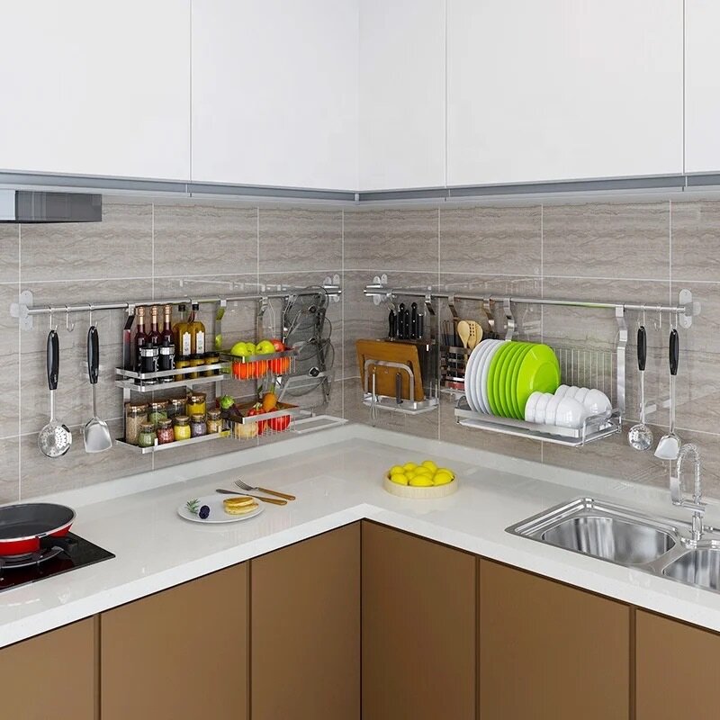 Étagère de rangement murale de cuisine en acier inoxydable indispensable pour vos cuisines modernes