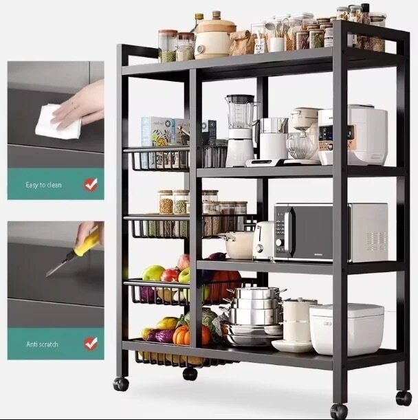 Étagère de cuisine à 4 niveaux, dotée de paniers en métal carbone, idéale pour un rangement optimal et pour maintenir votre cuisine bien organisée. Dimensions : 120cm x 40cm x 80cm.