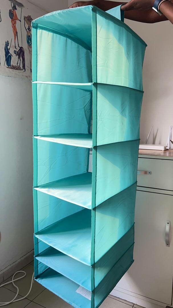 Étagère de penderie à suspendre- IKEA 6 étagères Hauteur : 125cm Largeur : 35cm Longueur : 45cm Polyester Vaste espace de rangement pour les vêtements *on accroche sur le barre dans le placard.