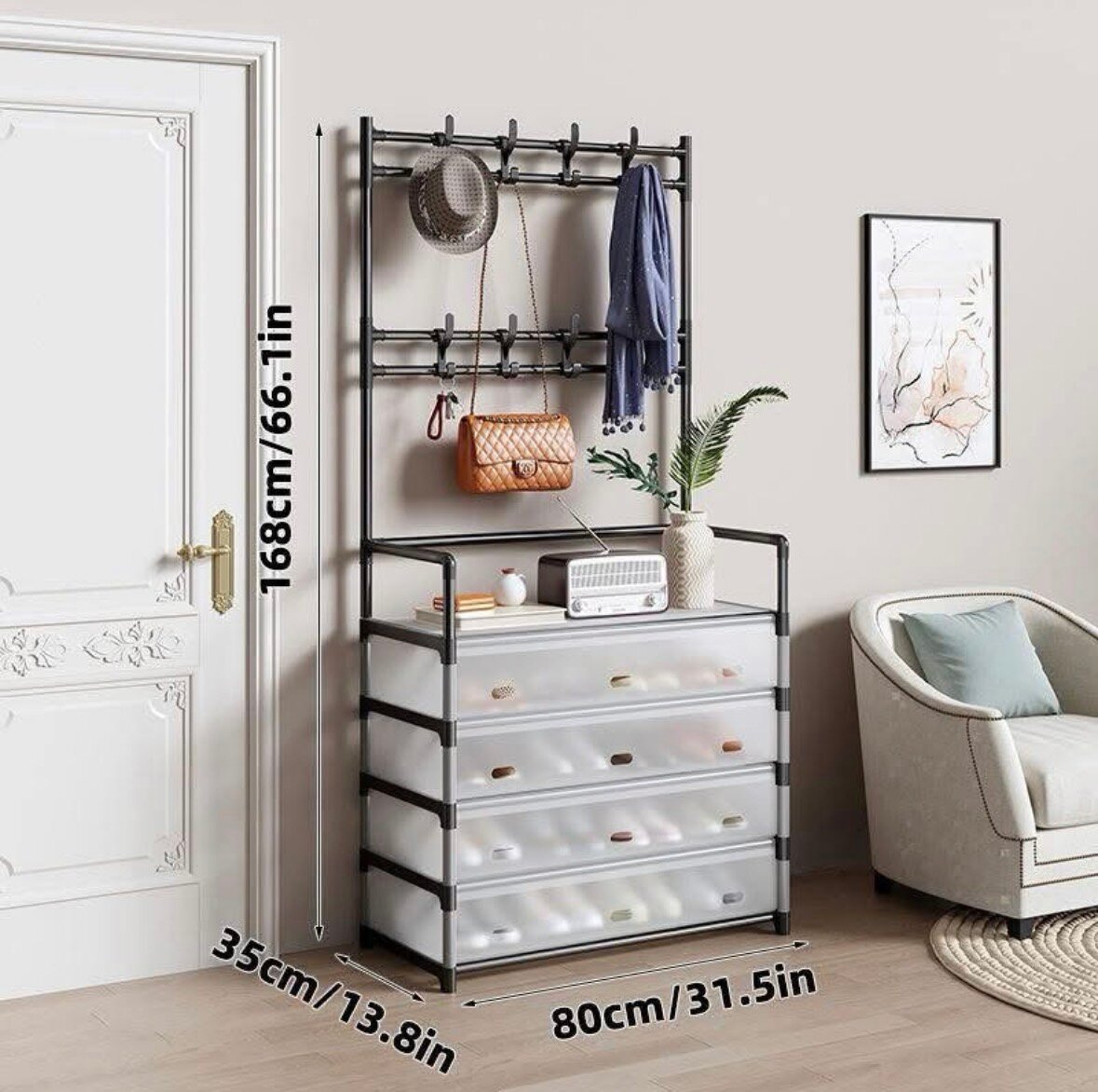 Etagère multifonction pensée pour organiser jusquà 15 paires de chaussures en toute simplicité. Que ce soit à l'entrée, dans la chambre ou même dans le dressing, elle s'adapte parfaitement à votre intérieur tout en gardant vos chaussures propres, accessibles et bien rangées.