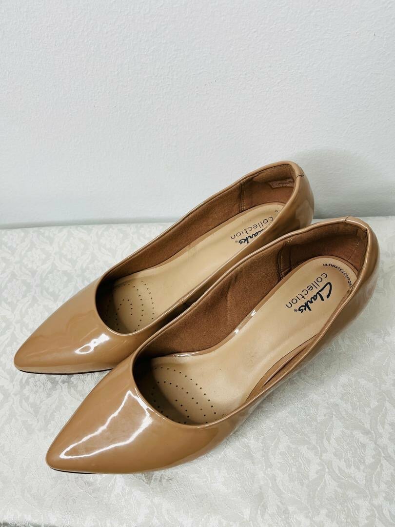 Découvrez ces élégantes ballerines marron de Clarks, parfaites pour un look raffiné au quotidien. Confortables et brillantes, elles s'accordent idéalement avec toutes vos tenues.