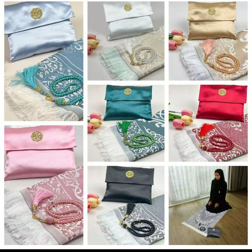 Un tapis de prière et un chapelet le tout dans une pochette