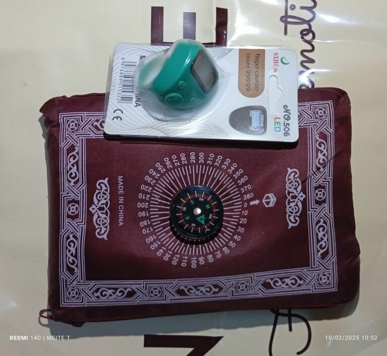 Ce tapis de prière portable, livré avec une boussole pratique, est idéal pour les prières où que vous soyez. Conçu avec des motifs élégants, il est facile à plier et à transporter. Une solution parfaite pour vos voyages ou votre usage quotidien.