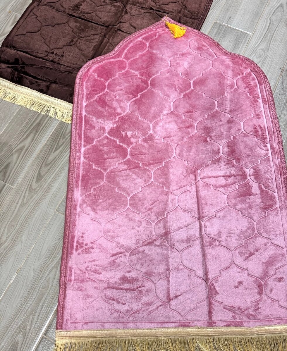 Tapis de prière en velours doux, idéal pour un confort optimal. Disponible en plusieurs couleurs élégantes. Parfait pour la maison ou la mosquée, il apporte une touche de luxe à votre routine quotidienne.