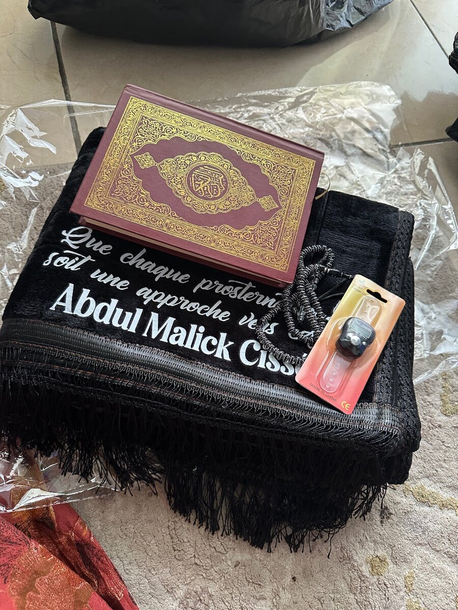 Transformez votre espace de méditation avec ce tapis de prière noir, accompagné d'un Coran et d'un chapelet. Idéal pour une pratique spirituelle sereine et inspirante.