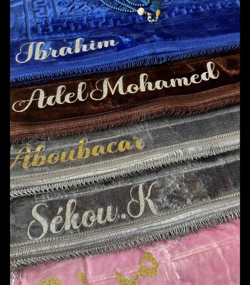 Transformez votre moment de prière avec notre tapis personnalisable en velours doux. Ajoutez votre nom pour une touche unique. Parfait pour un cadeau spécial.