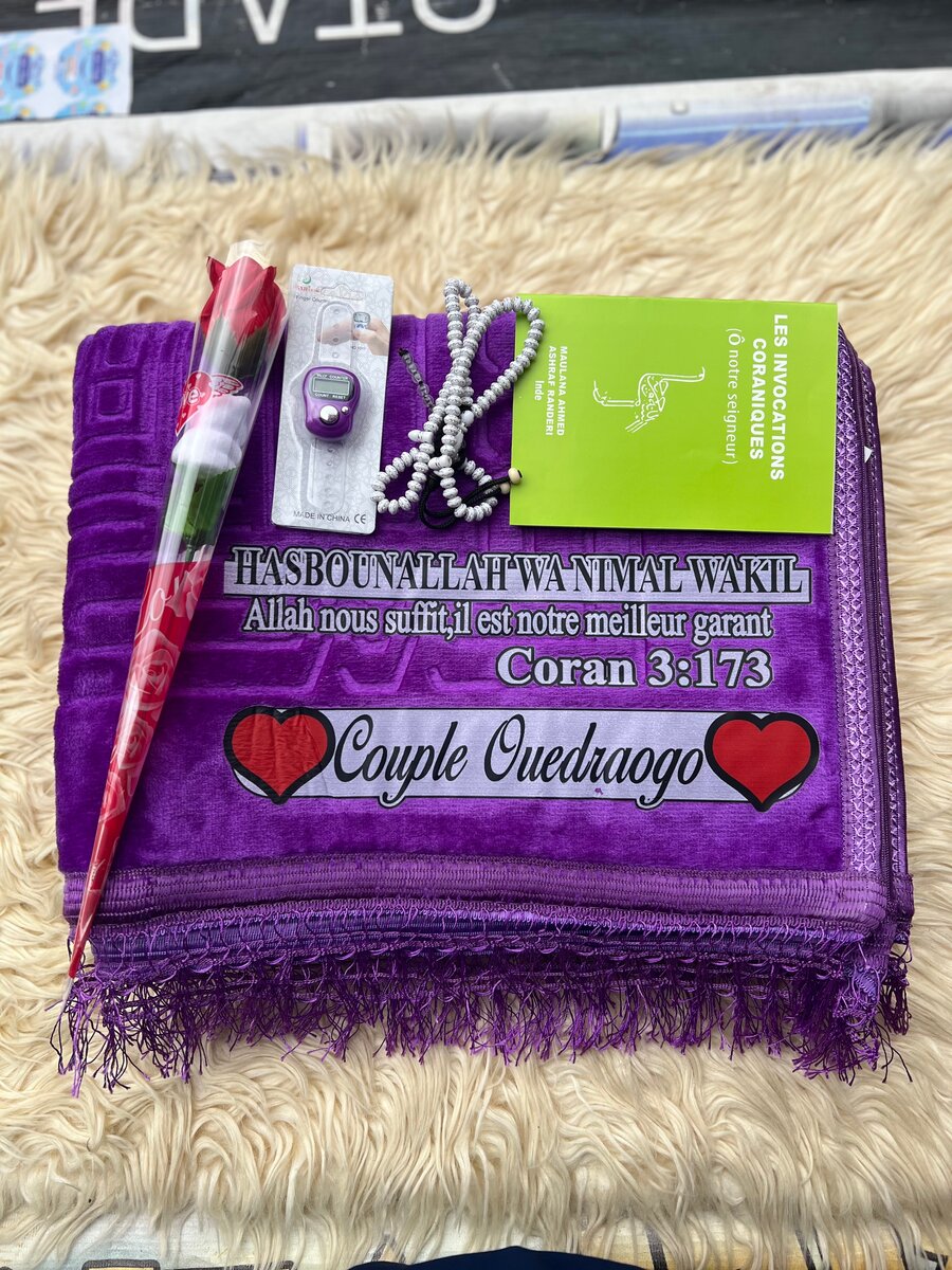 Découvrez notre élégant tapis de prière personnalisé, parfait pour enrichir vos moments spirituels. Conçu avec des matériaux de qualité, il est accompagné d'un chapelet, d'une rose symbolique et d'une bague de décompte. Idéal comme cadeau attentionné pour célébrer des occasions spéciales ou renforcer votre routine quotidienne de prières. Procurez-vous ce tapis aux couleurs vives et au design personnalisé dès aujourd'hui!