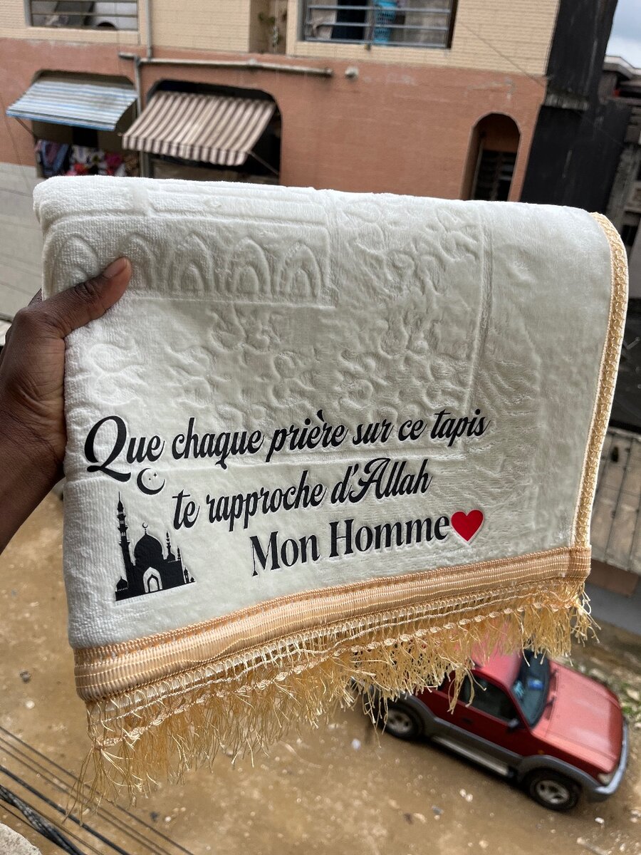 Ce tapis de prière personnalisé offre un confort exceptionnel pendant les moments spirituels. Fabriqué avec des matériaux doux et ornés de messages inspirants, il est idéal pour un usage quotidien ou comme cadeau spécial. Parfait pour renforcer votre connexion spirituelle.