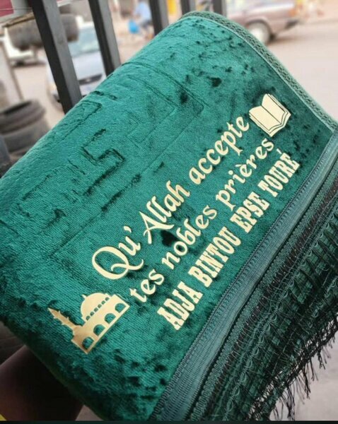 Tapis de prière personnalisé, brodé avec texte. Idéal pour la prière à la maison ou en voyage.