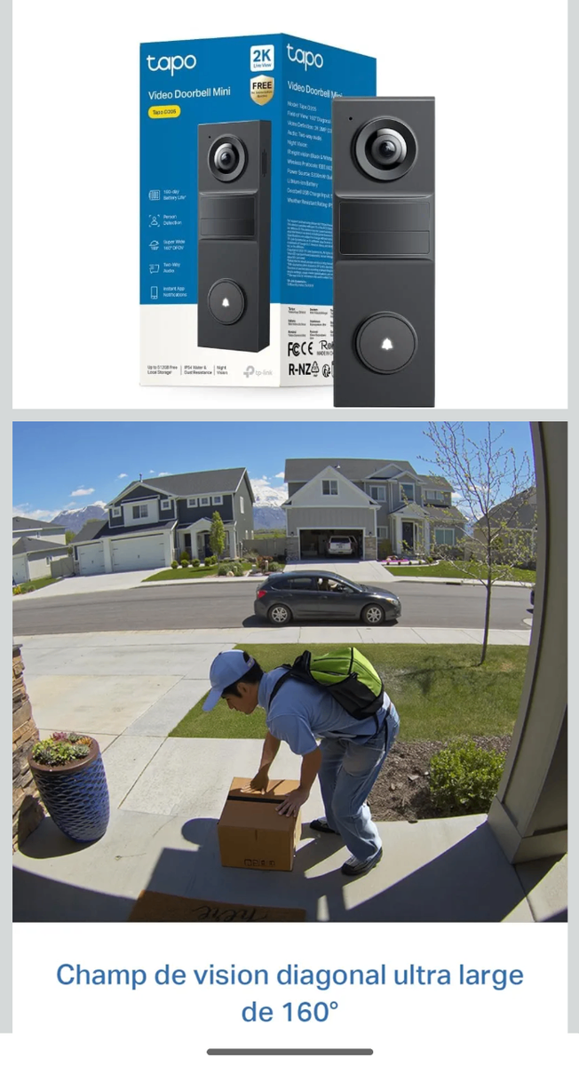 Découvrez l'interphone vidéo Tapo avec résolution 2K, détection IA gratuite et vision ultra large de 160°. Idéal pour une sécurité maximale à domicile. Profitez de 180 jours d'autonomie.