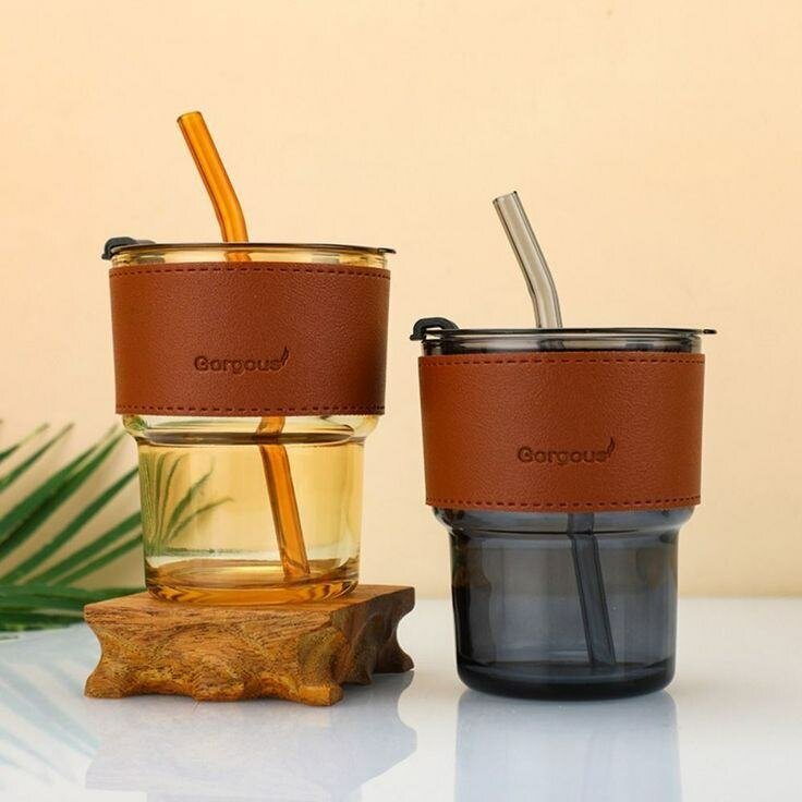 Découvrez nos verres en verre élégants, dotés d'un manchon en cuir pour un confort optimal. Parfaits pour les boissons chaudes et froides, ces verres de 450ml sont équipés d'une paille réutilisable. Idéal pour votre routine quotidienne ou pour impressionner vos invités.