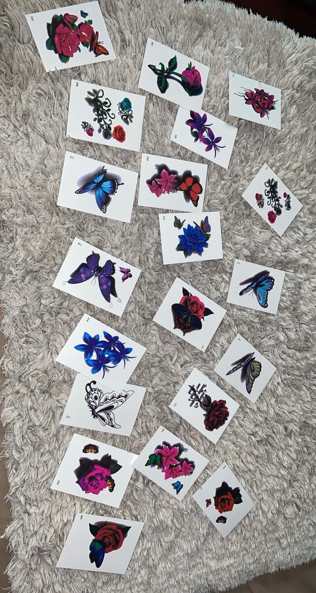 Explorez la beauté avec ces tatouages temporaires aux motifs vibrants de fleurs et papillons. Idéal pour événements spéciaux ou un look unique au quotidien. Facile à appliquer et à enlever.