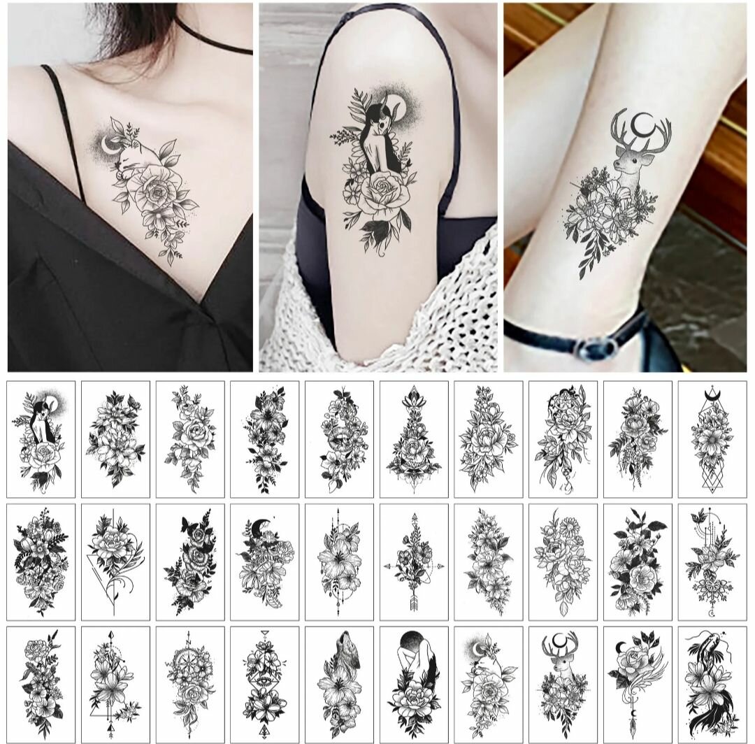 Découvrez nos tatouages temporaires au design floral exquis. Parfaits pour ajouter une touche d'élégance et de style à votre look, ces motifs comprennent des fleurs délicates et des animaux. Idéal pour un événement spécial ou un changement temporaire. Faciles à appliquer et à enlever, ils sont un choix parfait pour exprimer votre créativité sur la peau sans engagement !