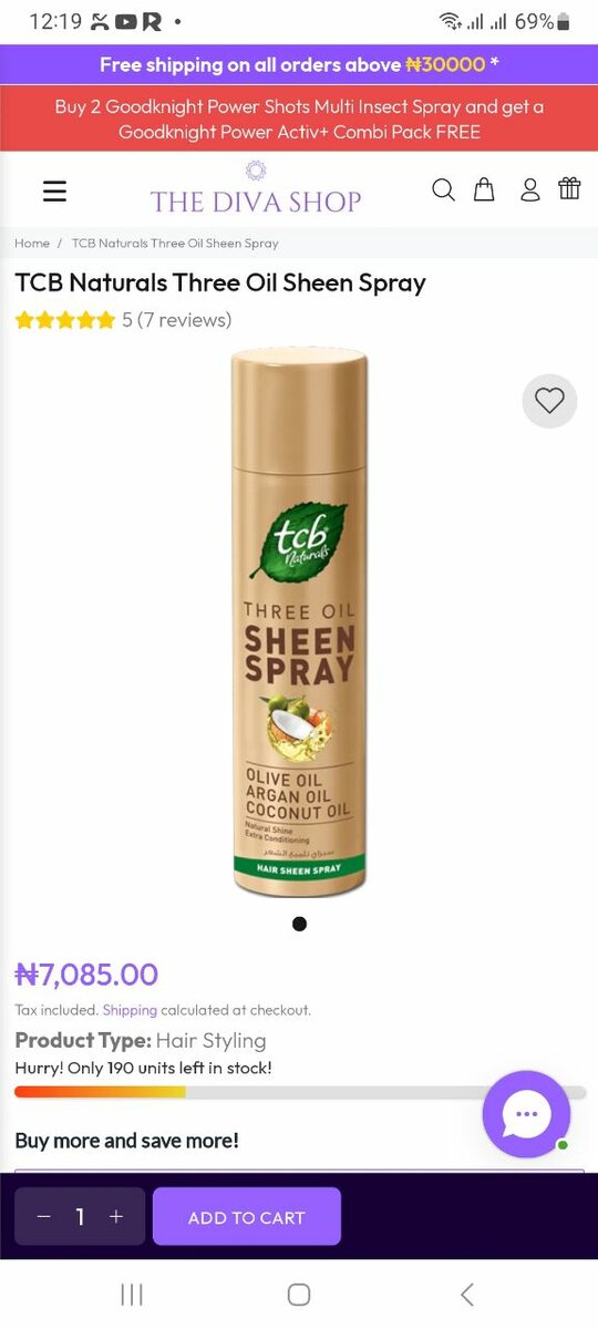 Sheen Spray It has olive oil, argan oil and coconut oil for natural shine and extra conditioning