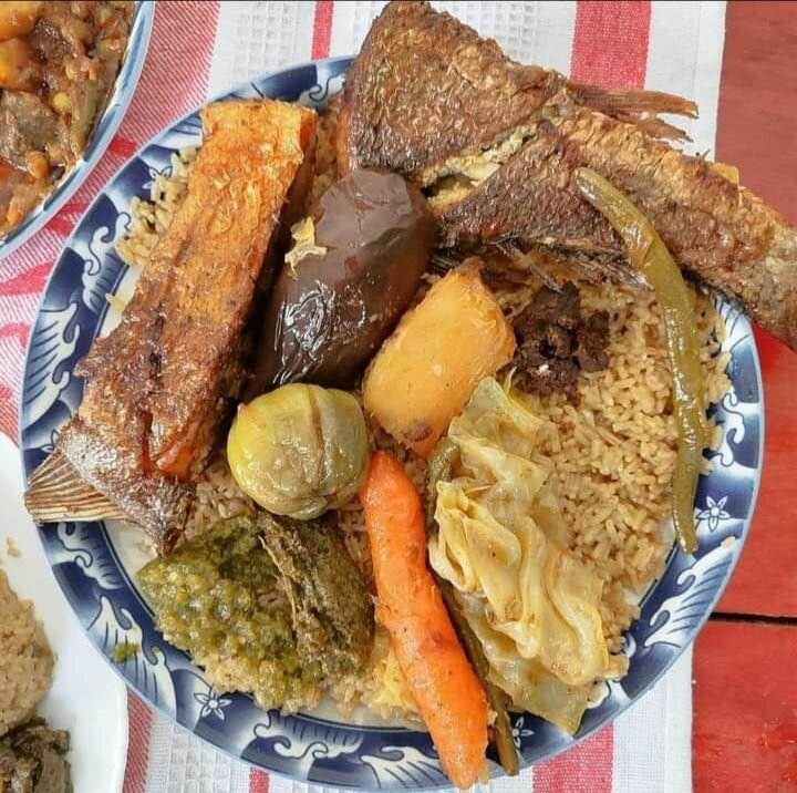 Tchep au poulet, viande et ou poisson appelé pour préciser l'accompagnement que vous voulez ( viande ou poisson) le plat pour une personne