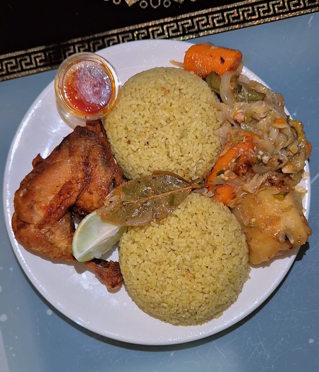 Ce plat est exclusivement réservé au menu du lundi Dégustez cette assiette de riz parfumé accompagné de poulet croustillant et de légumes assortis. Parfait pour un repas équilibré et savoureux.