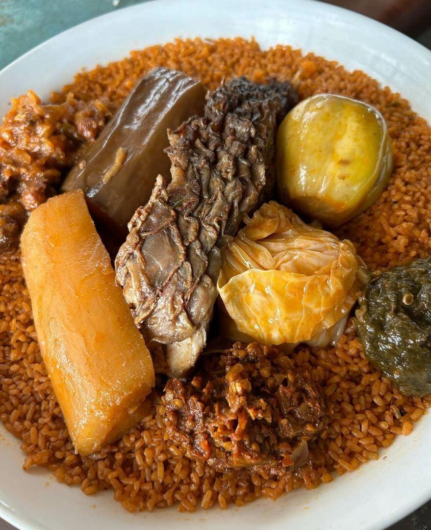 Découvrez le riz jollof africain, un délice épicé garni de poissons et de légumes variés. Parfait pour un repas convivial ou une exploration culinaire. Savourez la richesse des saveurs africaines.