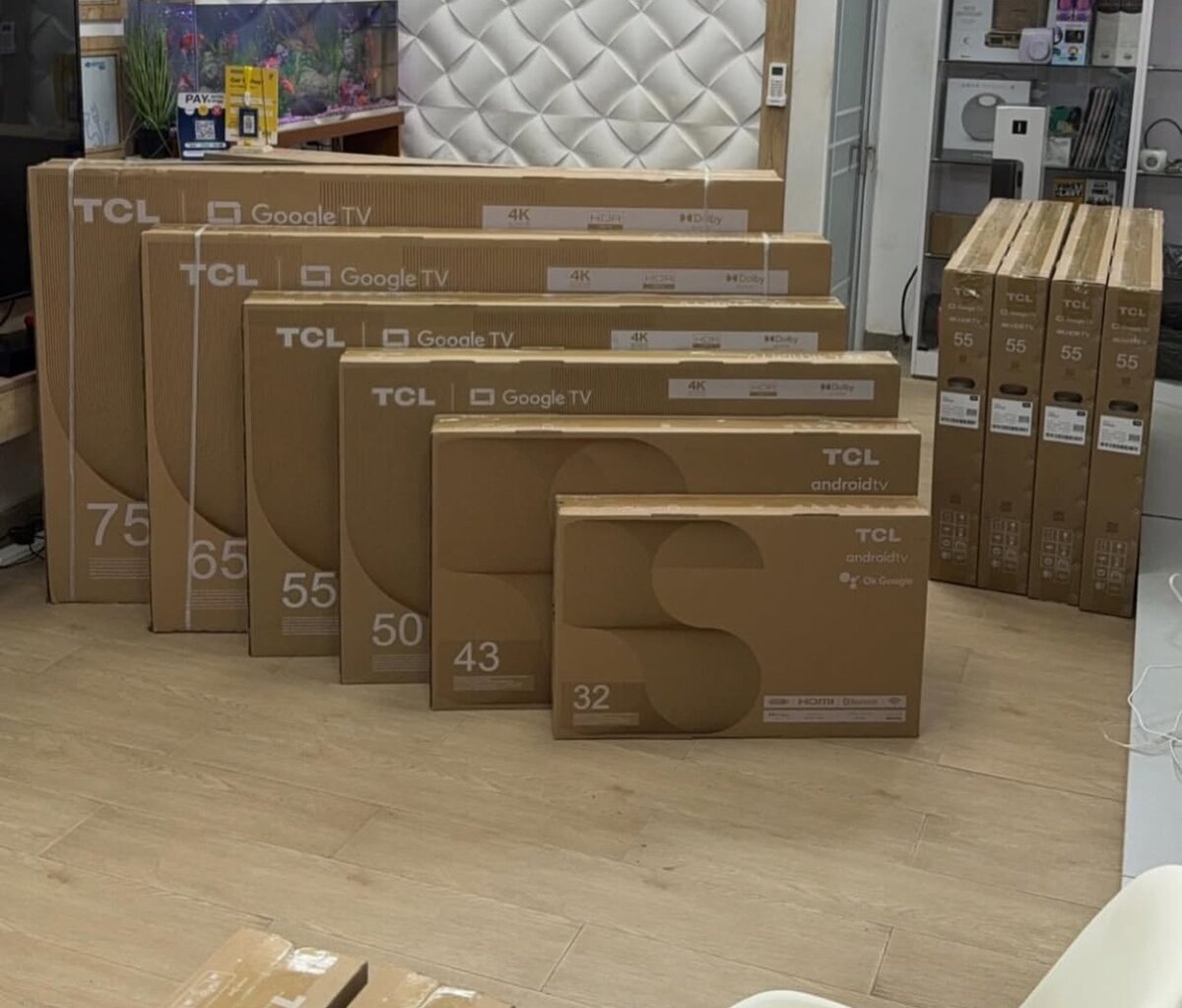 Buy any TCL smart android TV from us 43" - Ghc 3300 50" - Ghc 4500 55" - Ghc 5500 65" - Ghc 7000 75" - Ghc 9,000 85" - Ghc 13,000