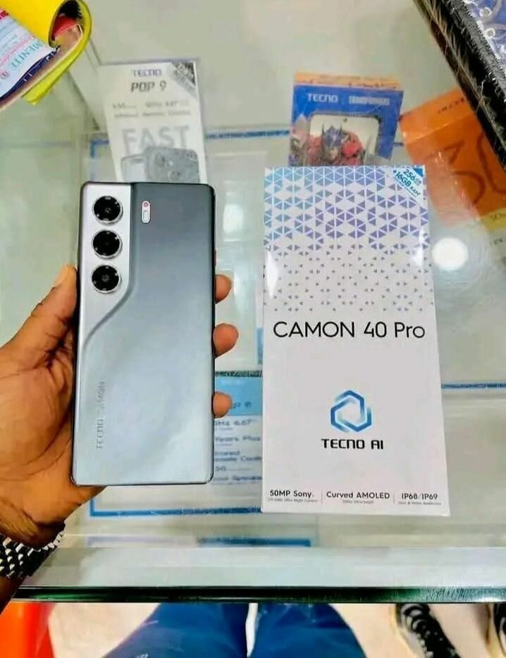 Découvrez le Tecno AI Camon 40 Pro, un smartphone haut de gamme avec un appareil photo 50MP, écran AMOLED incurvé et étanche IP68.