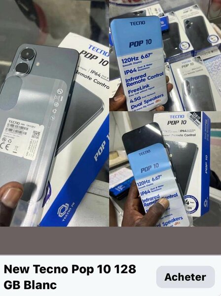 Découvrez le Tecno POP 10 au design élégant et aux fonctionnalités avancées. Écran 120Hz, étanchéité IP64 et télécommande infrarouge pour une expérience fluide. Idéal pour les amateurs de technologie à la recherche de performances exceptionnelles. Avec 64 Go de stockage et 4 ans de garantie, c'est le choix parfait pour tous.