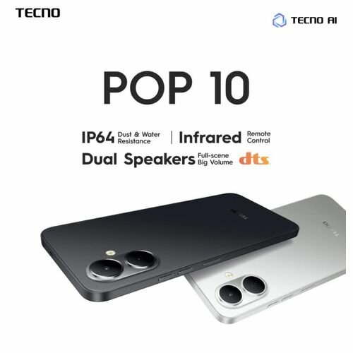 Découvrez le Tecno Pop 10 avec IP64 étanche, télécommande infrarouge et haut-parleurs doubles pour un son puissant. Idéal pour tous vos besoins quotidiens!